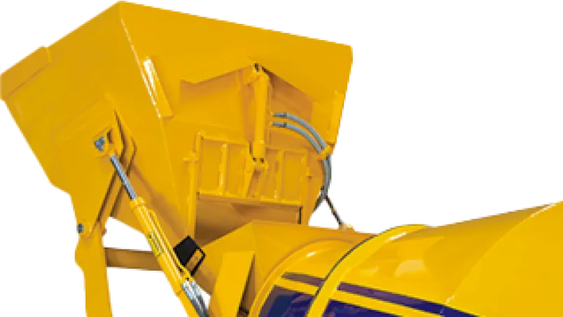 The Loading arm with tilting hatch bucket ensures smooth flow of material into the drum, thus minimising spillage.